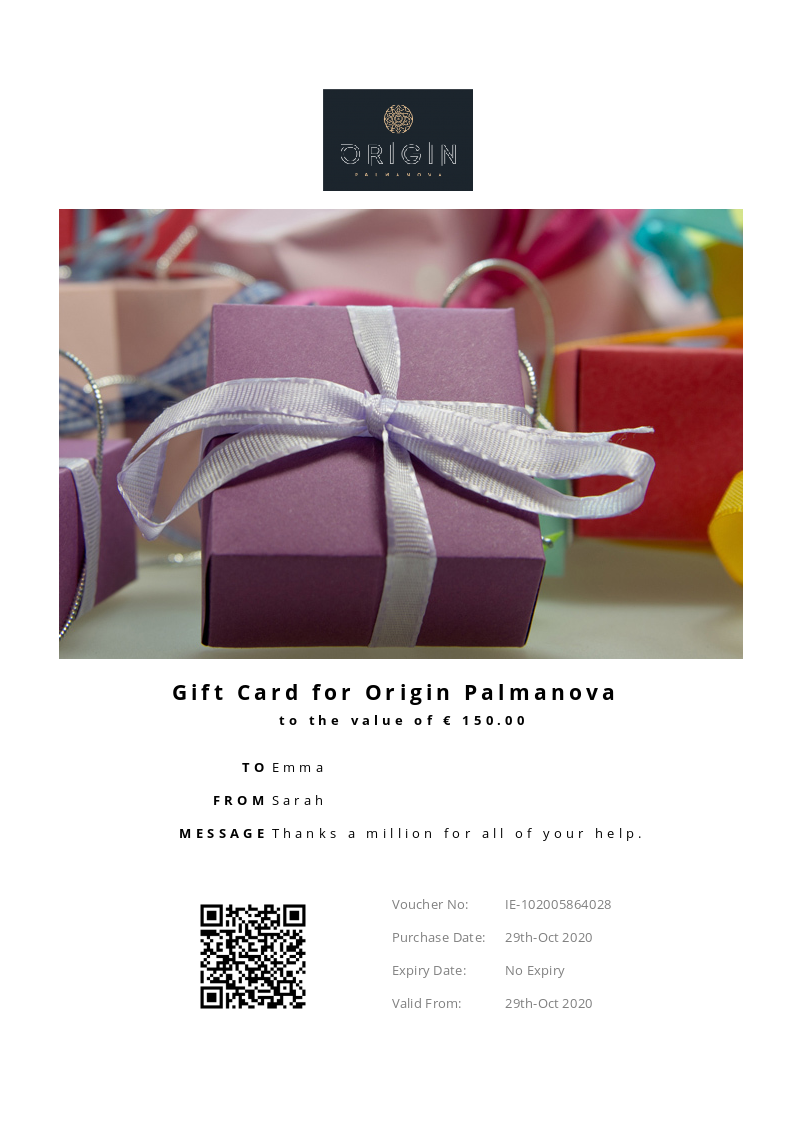 Origin Palmanova allows you to purchase instantly printable gift vouchers, special offers and tickets using the Voucher Connect platform.